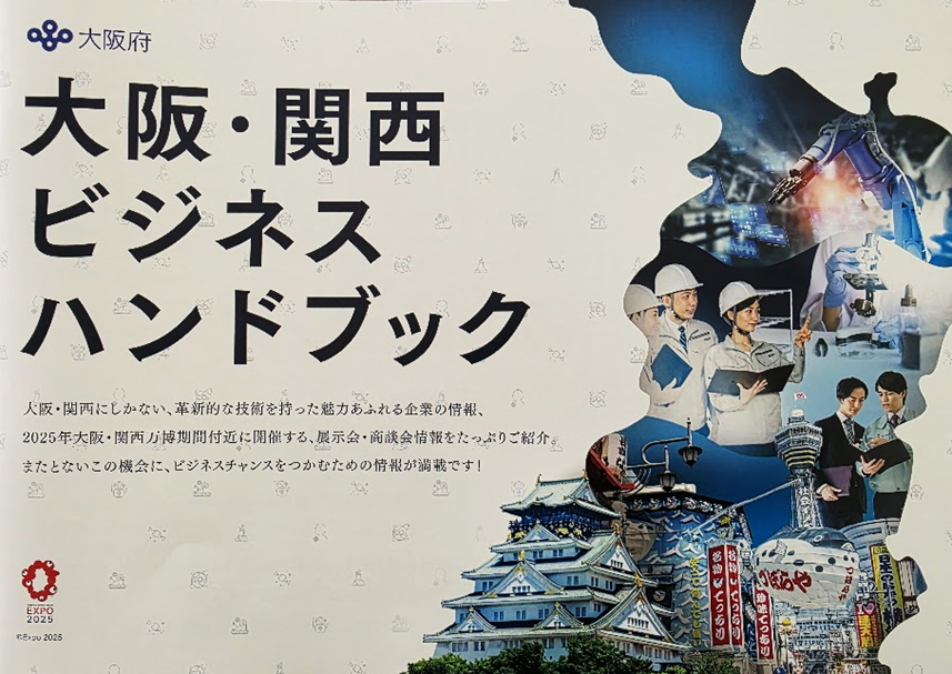 ニュースEXPO2025大阪関西万博に合わせ大阪府商工労働部より発行された標記ハンドブックに、大阪関西エリアのおすすめ企業57社の内、先端企業の1社として選定掲載されました。